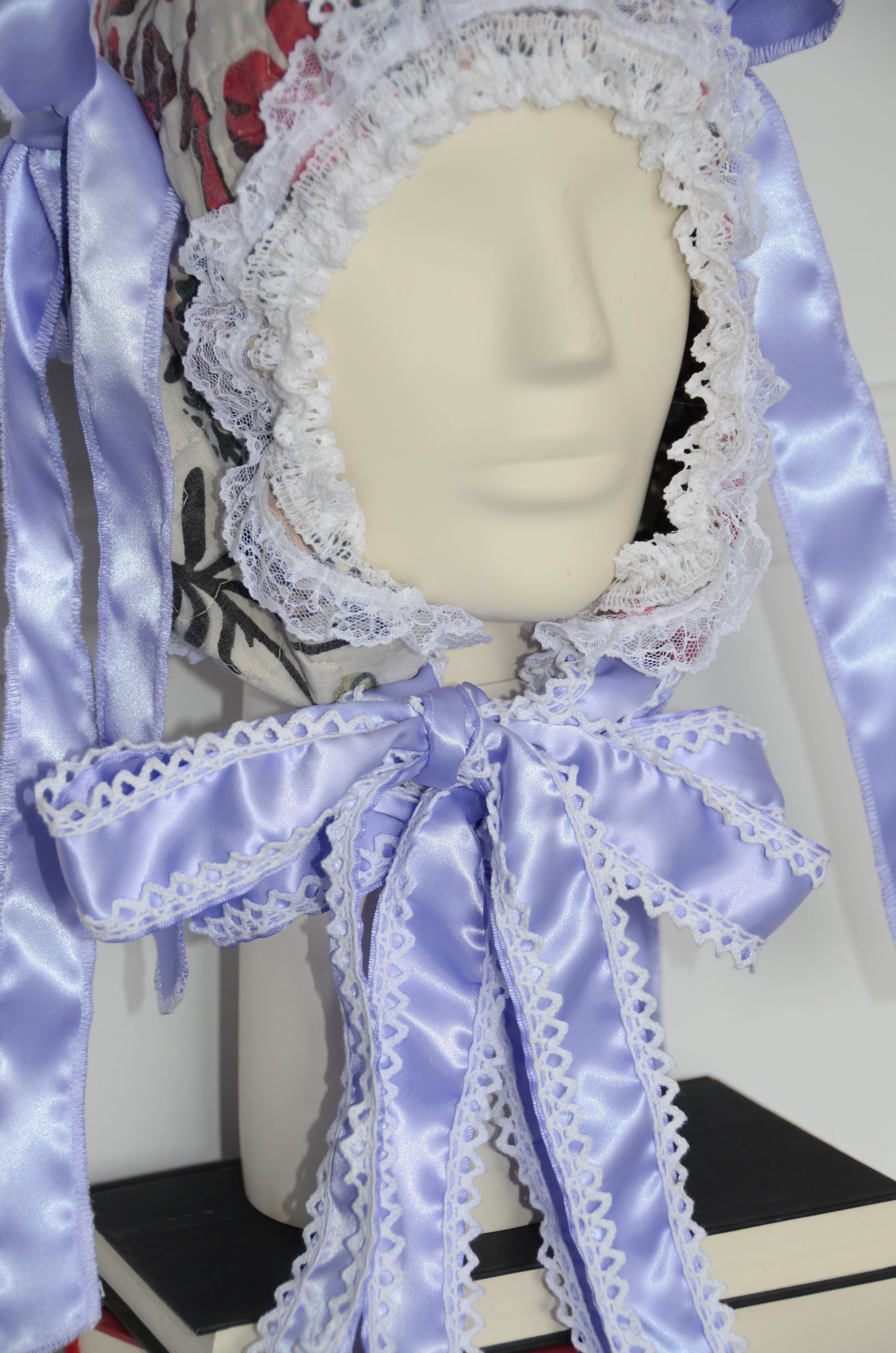 This vintage-inspired hat is a truly elegant piece. Crafted from recycled fabrics, it combines a refined floral print, lace and long lavender ribbons for a touch of timeless grace. A unique accessory, between softness and sophistication.