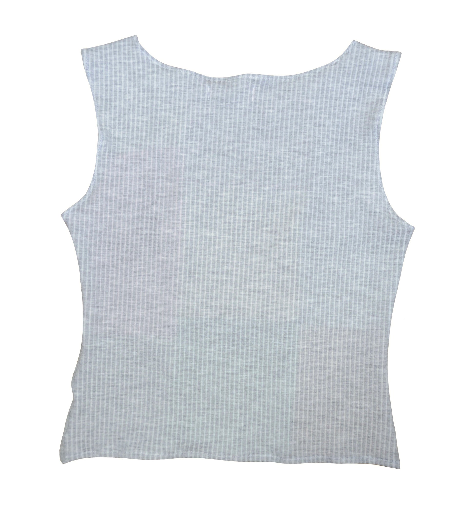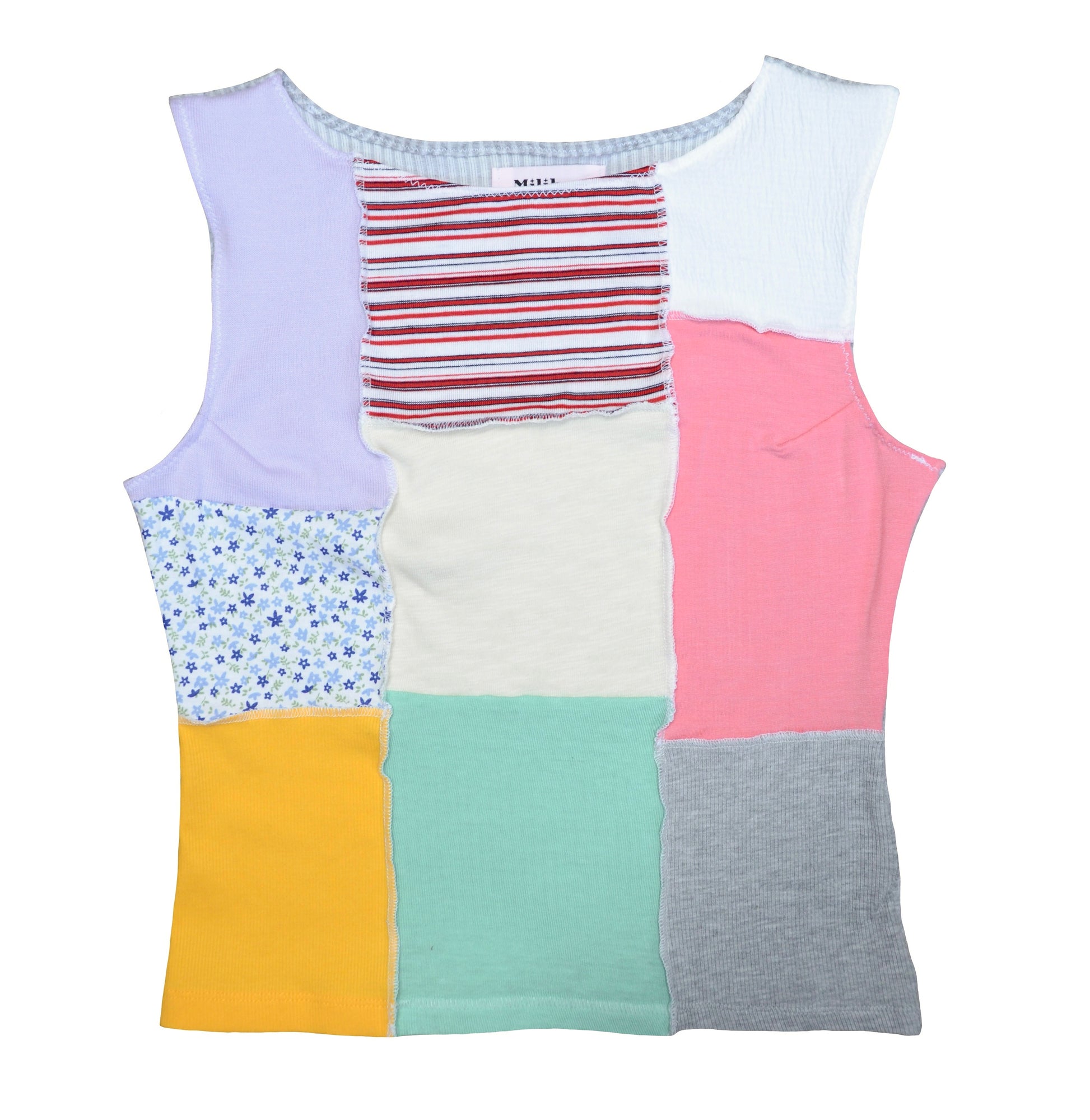 This tank top has been entirely handmade from new, soft, stretchy fabric samples. Each piece of fabric has been carefully assembled to give a second life to scraps and reduce textile waste.