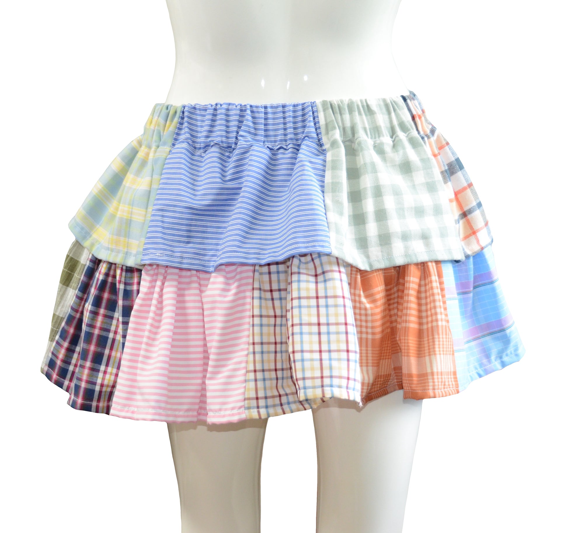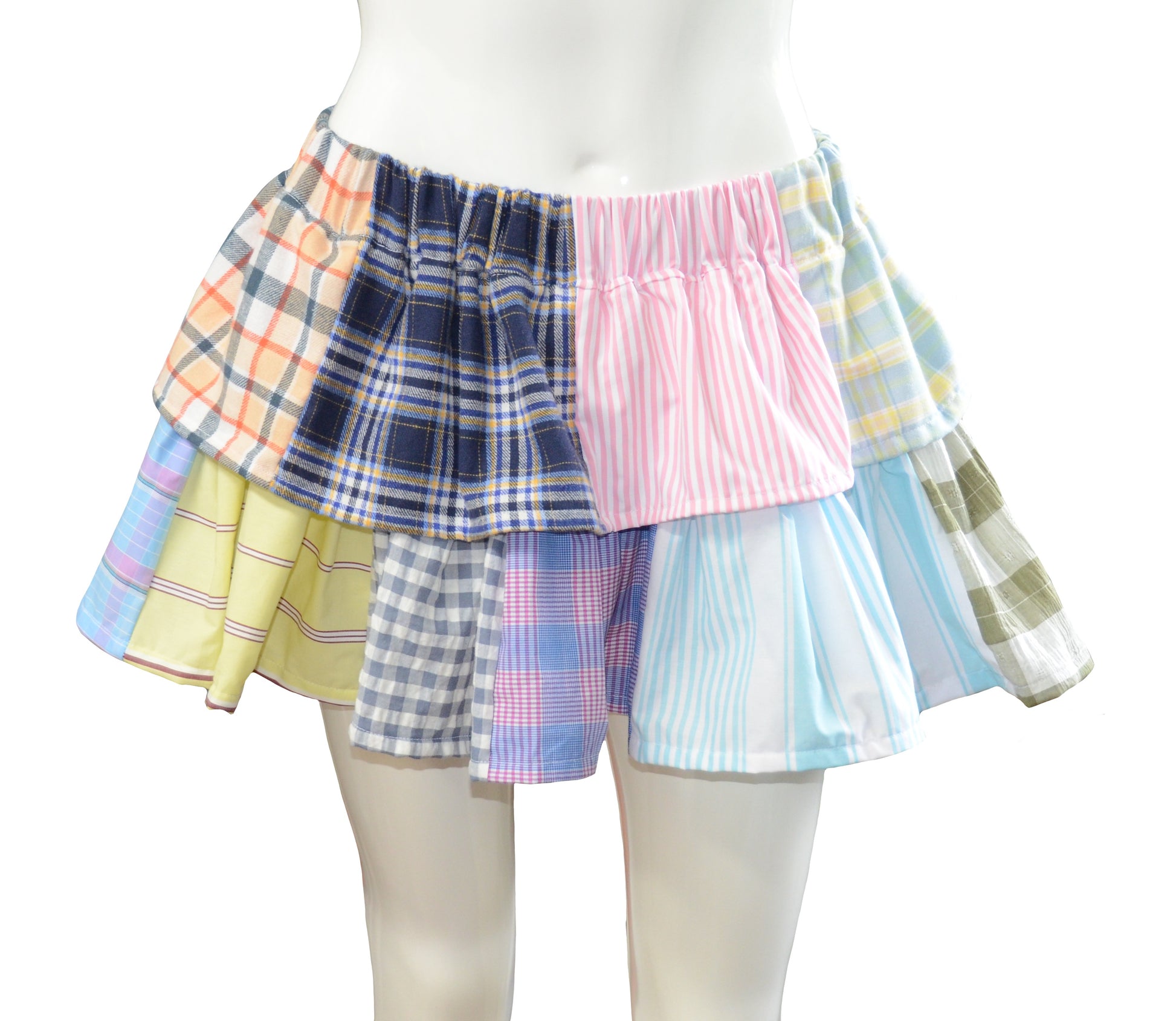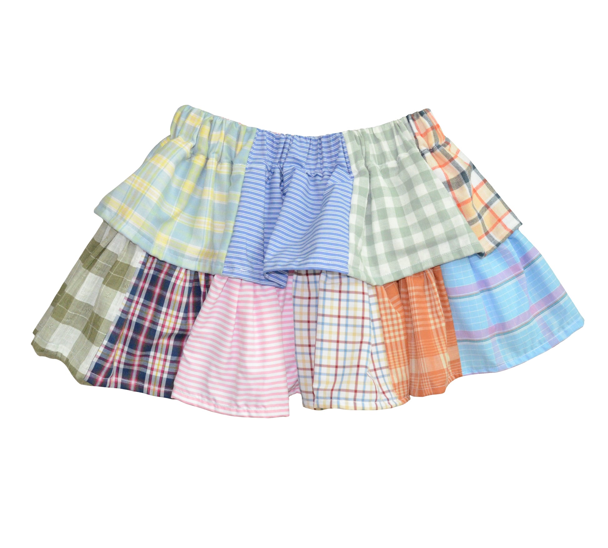 Handmade patchwork skirt made from upcycled colorful and checkered fabrics. It can be worn on both sides. This skirt is one of a kind.