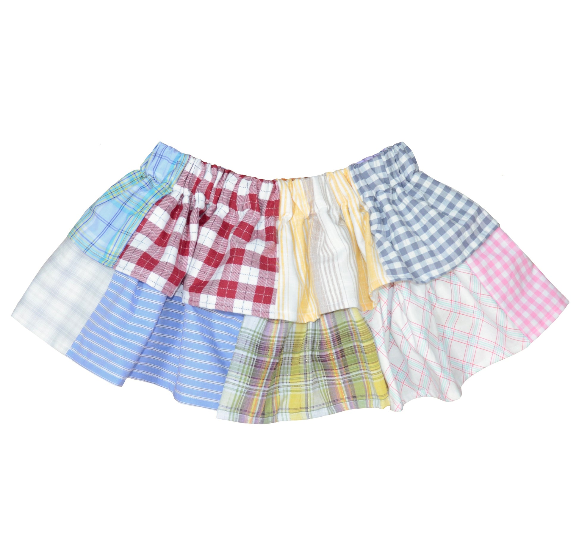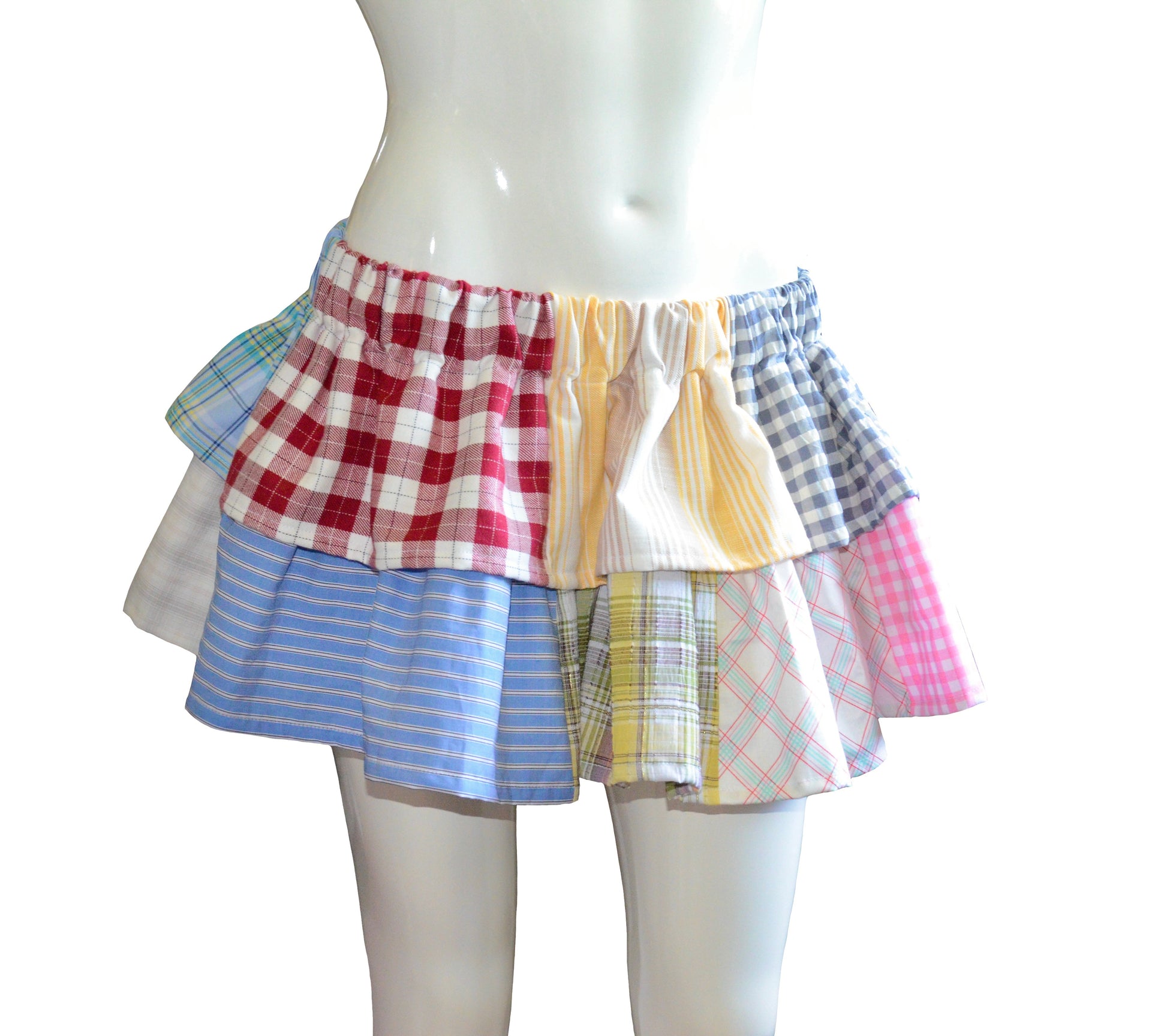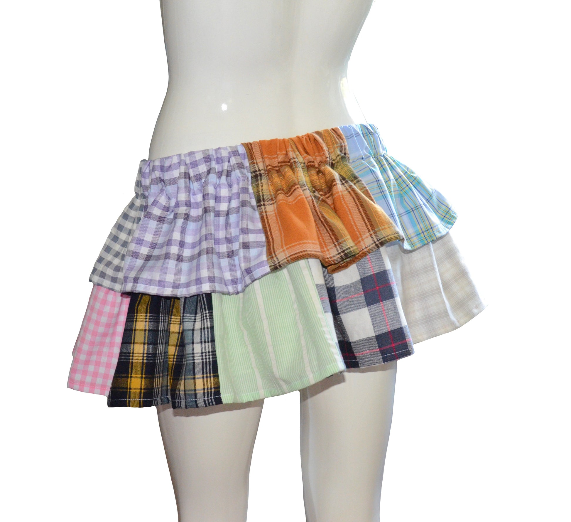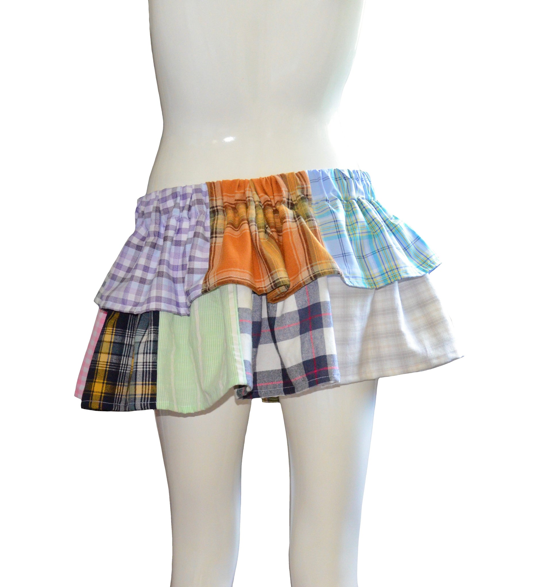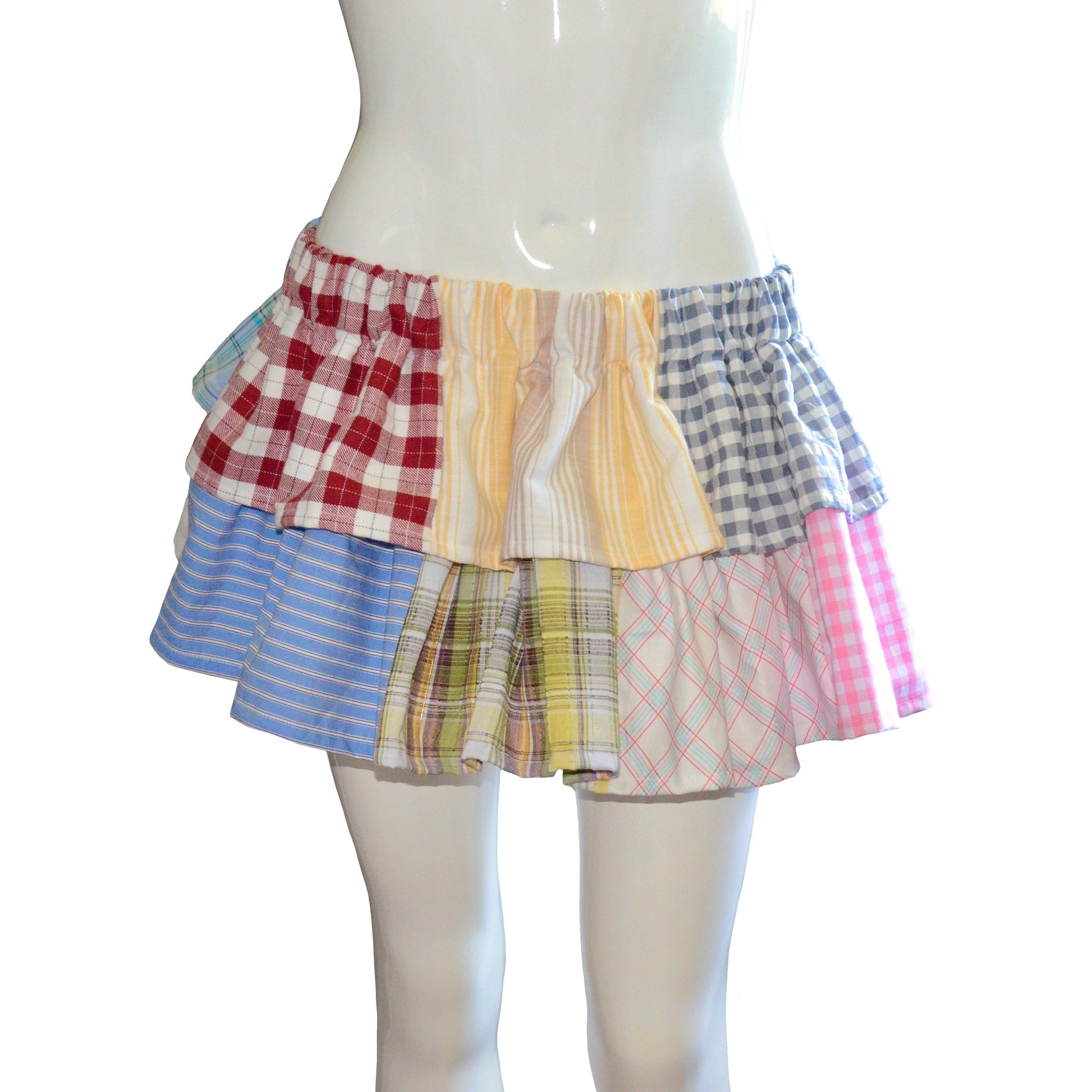 Handmade patchwork skirt made from recycled colorful and checkered fabrics. It can be worn on both sides. This skirt is one of a kind.