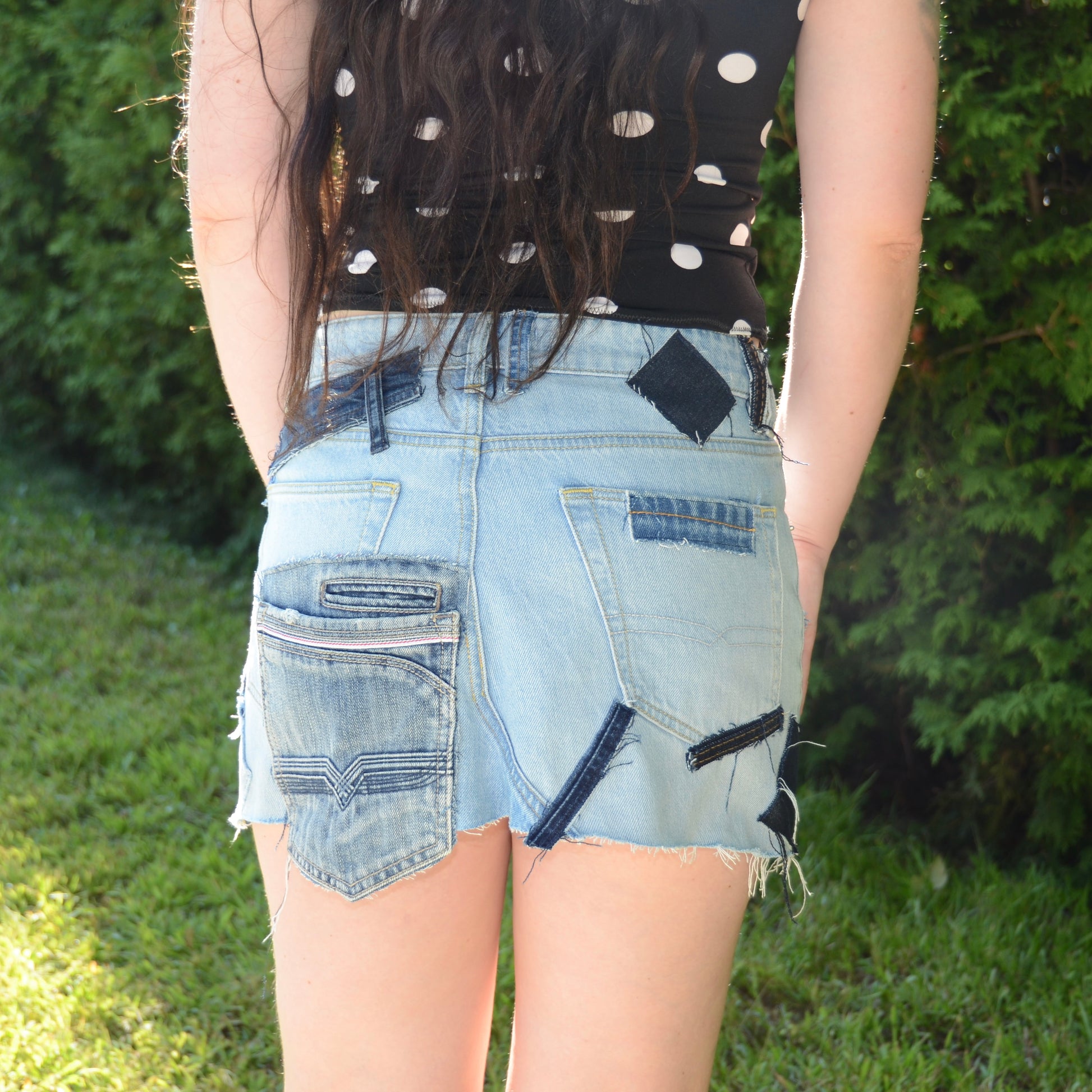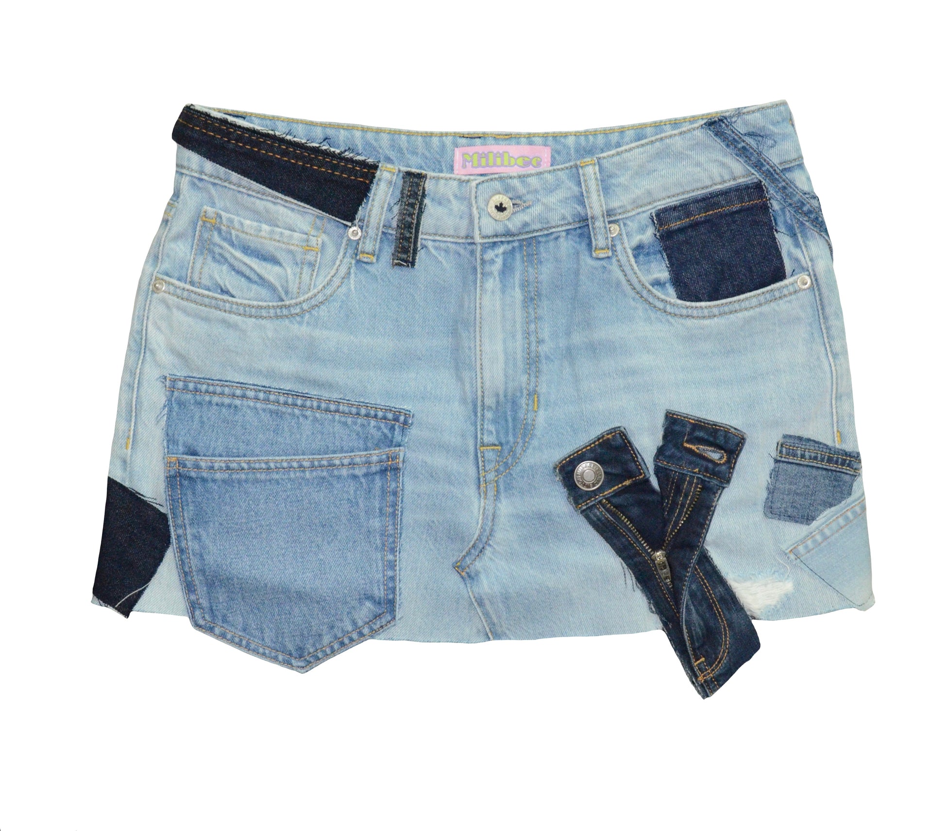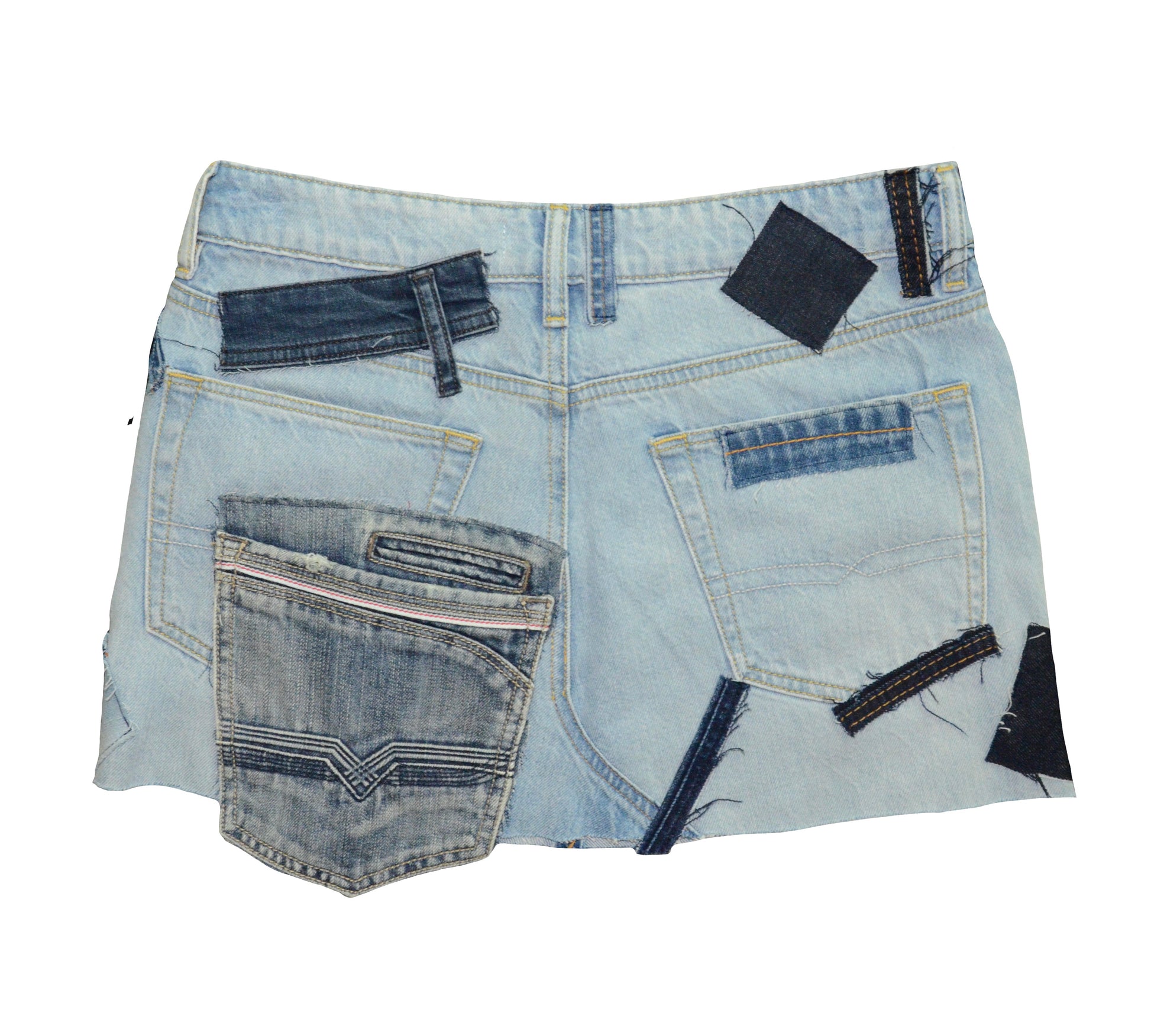 Handcrafted from recycled jeans. It has 5 pockets. Like most of our products, this skirt is unique.