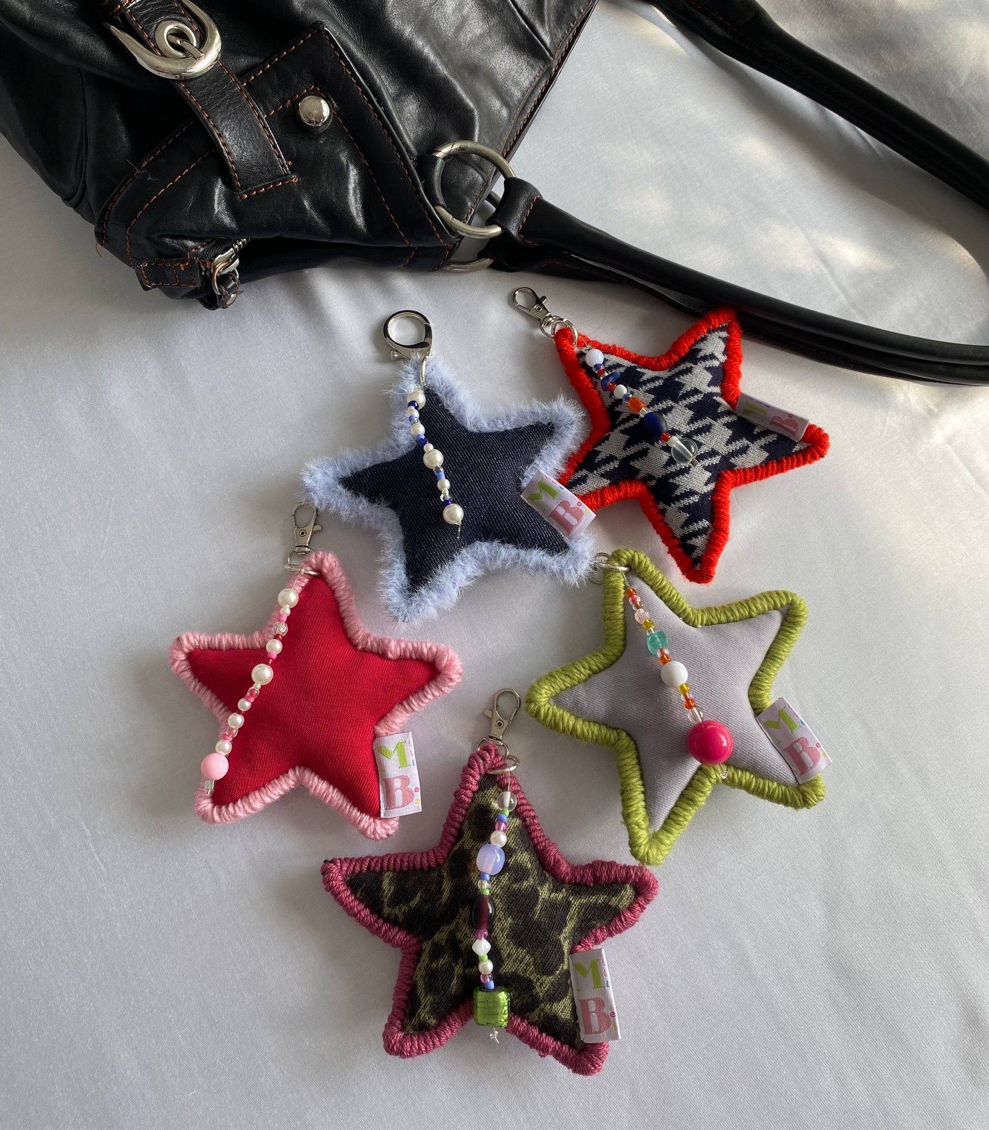 This padded star-shaped keyring can be attached to absolutely anything. It's great for accessorizing your purse, belt, keys, beanie or waistband on your pants. The star is fitted with beads of all kinds. It's the accessory you need to add a little something extra to your looks.