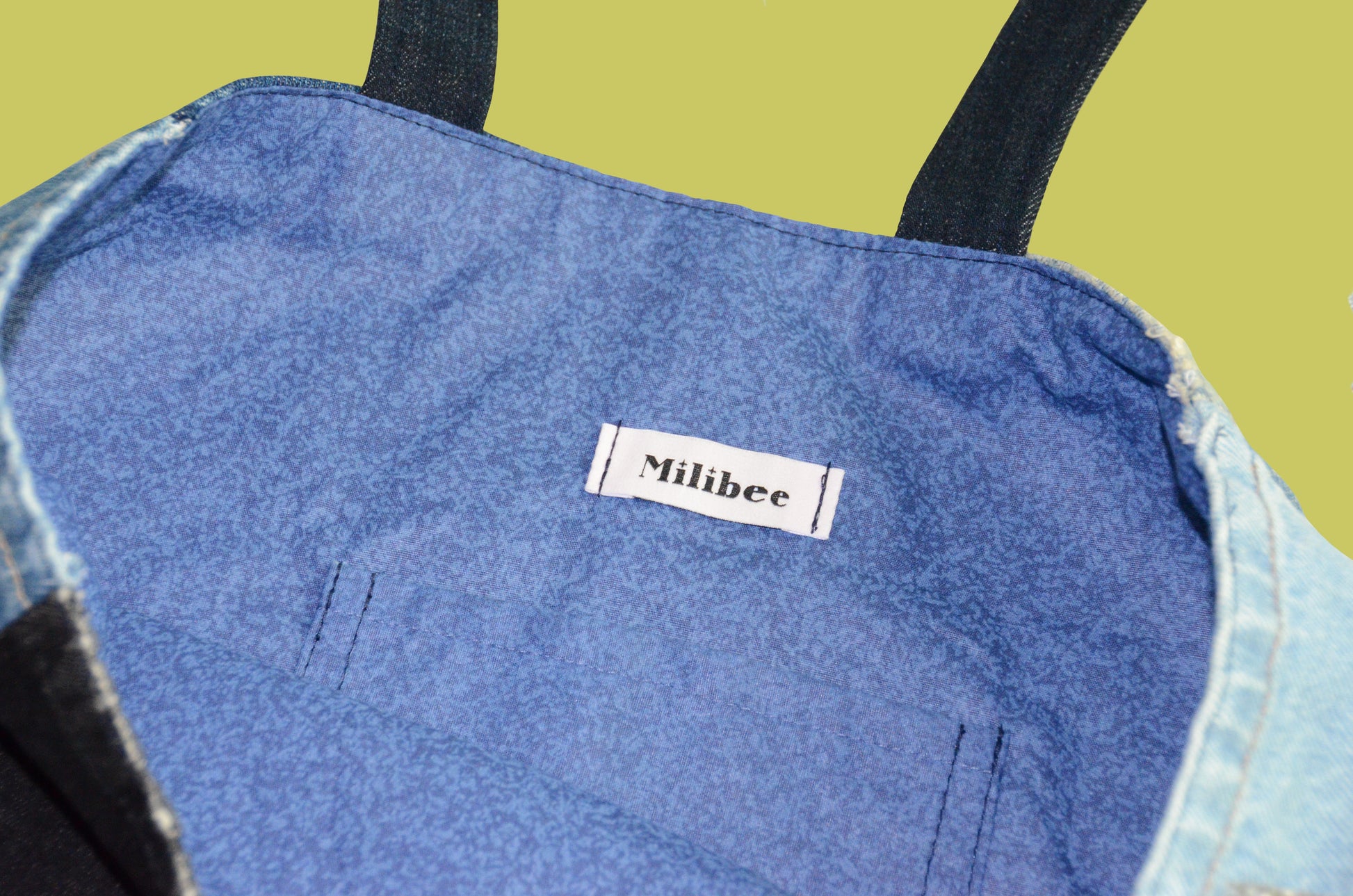This tote bag is handmade from recycled denim at our workshop in Greater Montreal. It has 2 pockets on each side, just the right size for your water bottle or other items. Inside you'll find a pocket for small items. It's the tote bag you need for running errands or storing your daily essentials.
