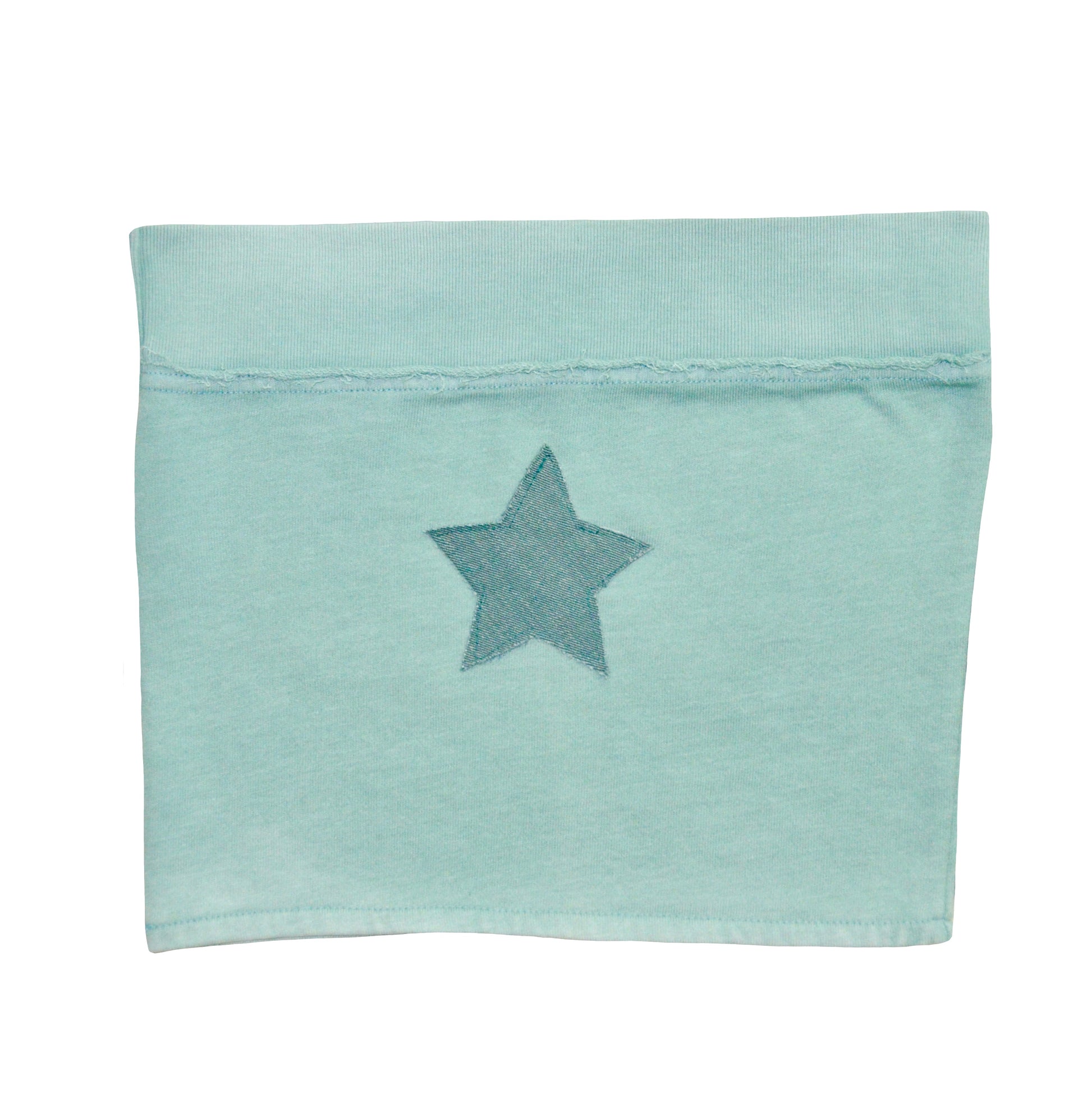 This headband has been entirely handmade from stretch fabric. It features a star on the front.