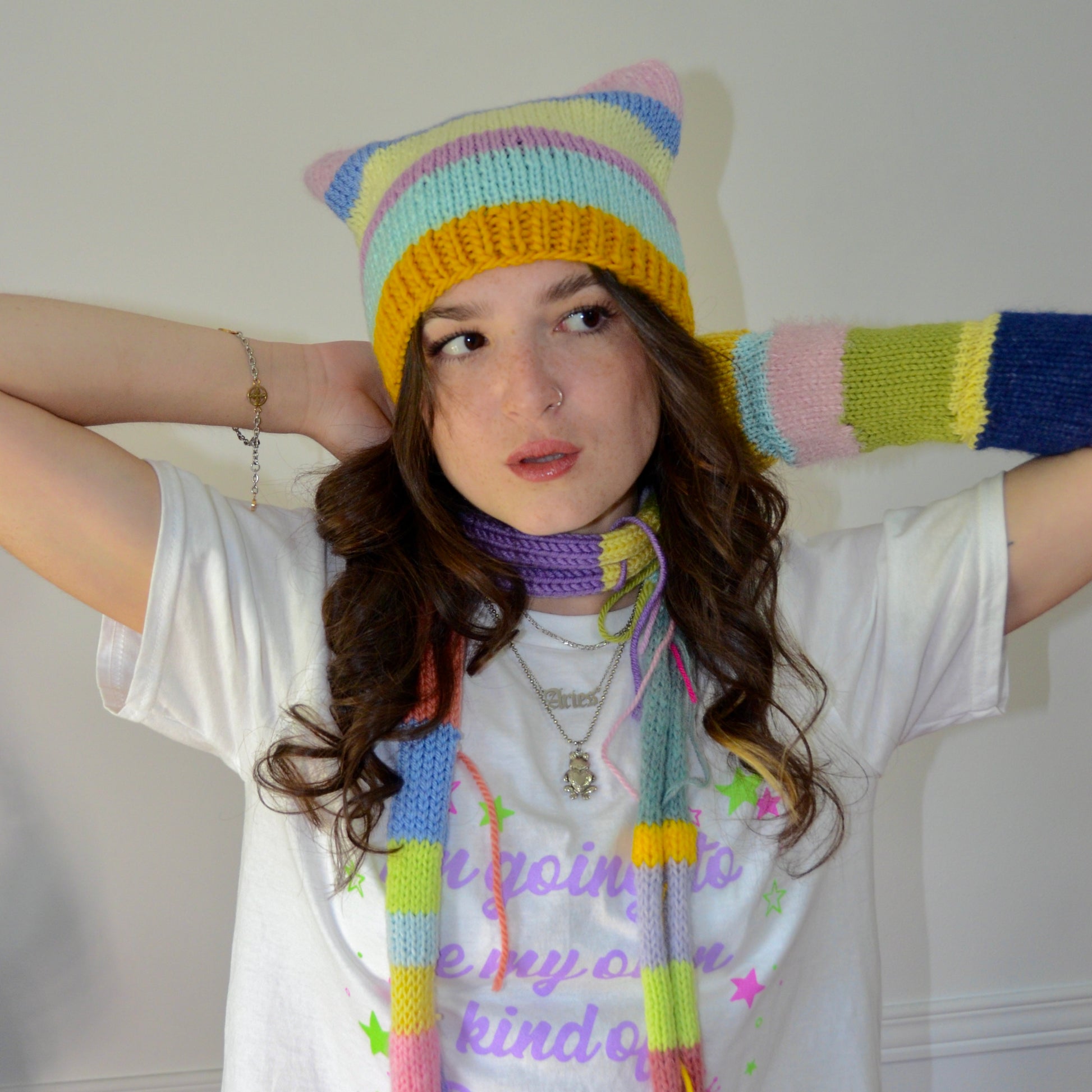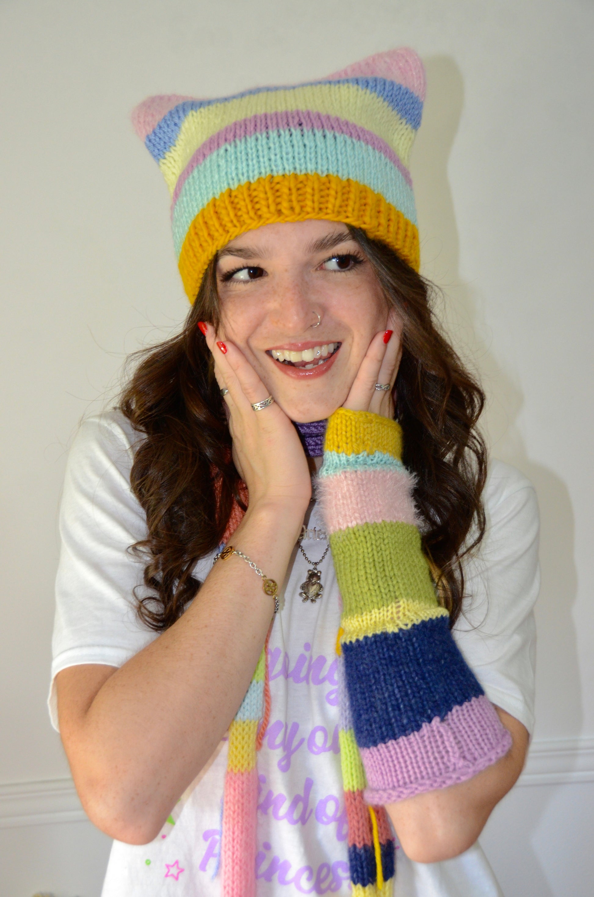 A super-soft cat-ear beanie hand-knit at our Atelier in Greater Montreal. An essential for fall and winter to add a funky touch to your style. Made from alpaca wool, acrylic, polyamide, wool and nylon.